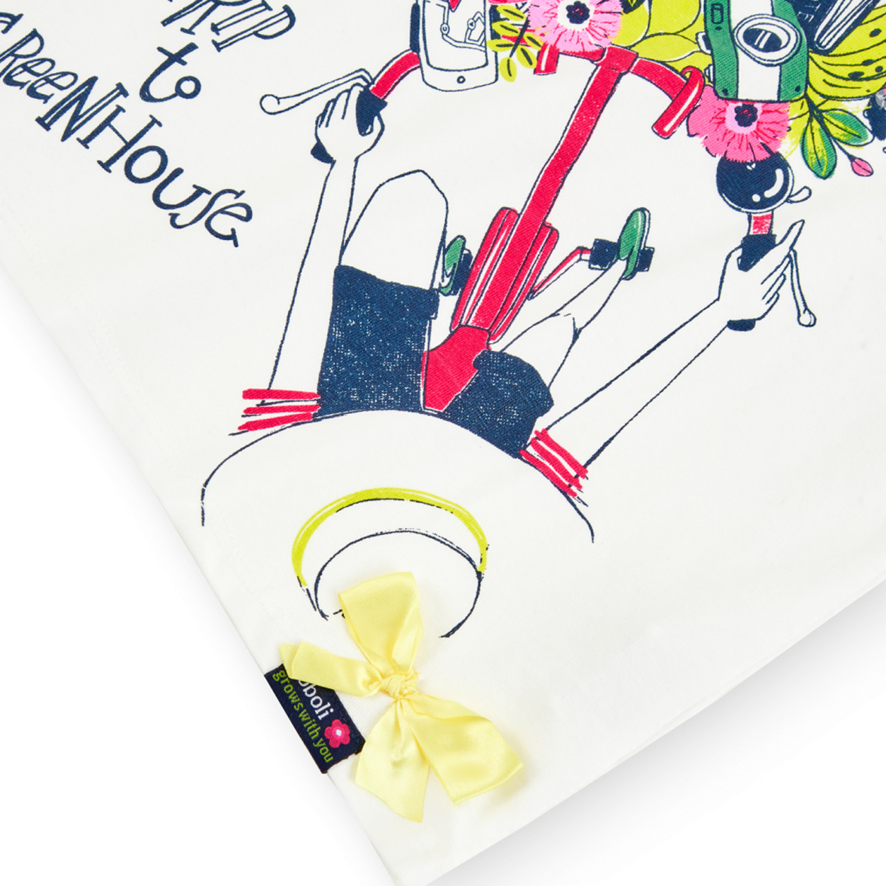 Tricou fete din bumbac, imprimeu floral, fundita aplicata cluoarea lime, Boboli.