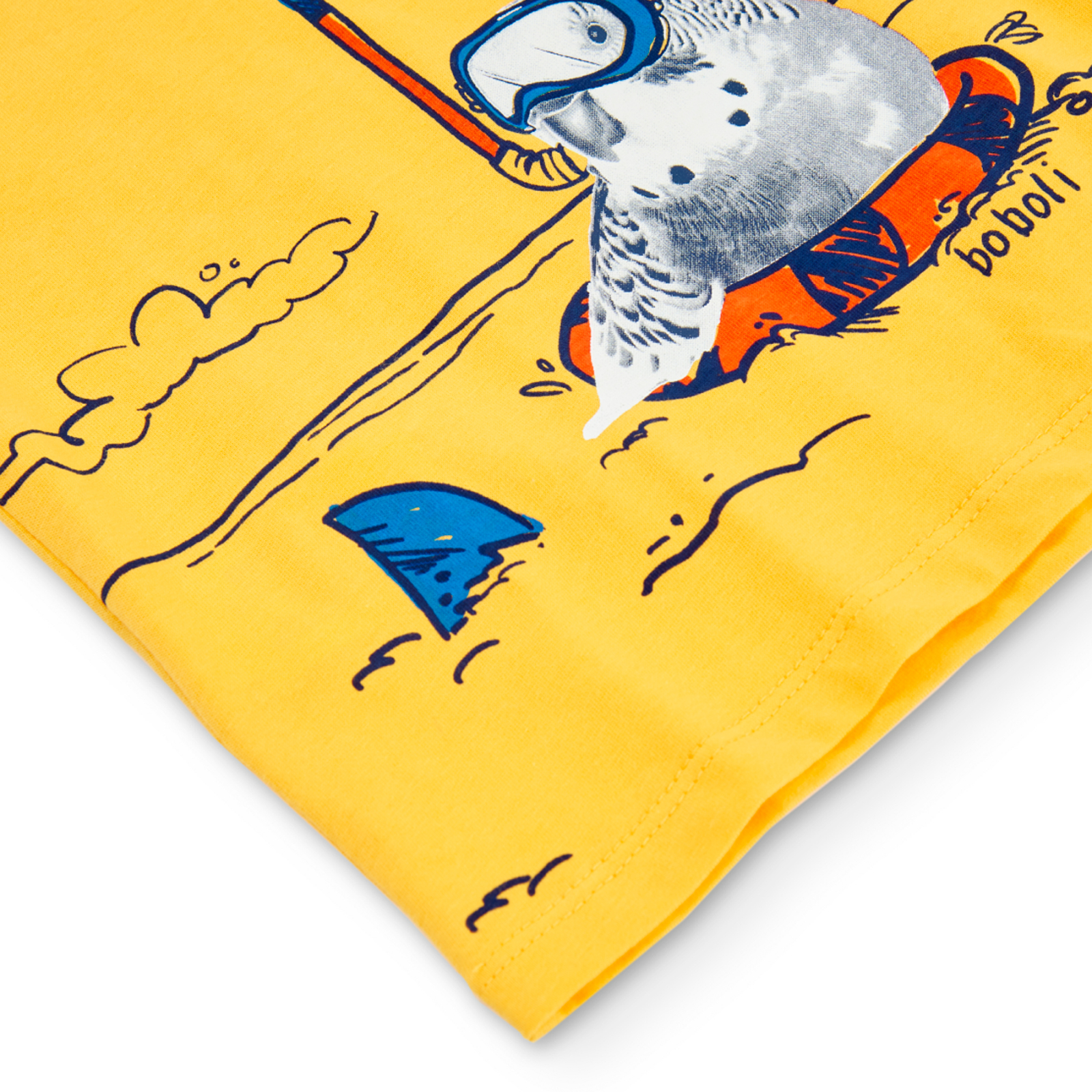 Tricou baiat 1-8 ani, maneca scurta, bumbac oeko tex, imprimeu pasare, galben, brand Boboli